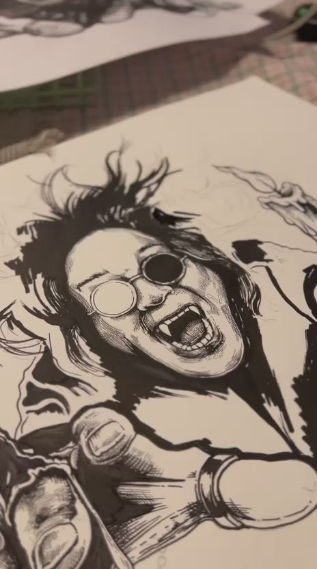 Listo! Me demoré en sacar este diseño supongo que por los procesos del duelo y esas cosas. Así que “No more tears” y vamos con la animita rockera pa San Ozzy. Les dejo algo del proceso de entintado de la piezas. Me gustó el concepto de “animita rockera” por varios motivos, pero eso del altar informal y homenaje portátil me funciona.
