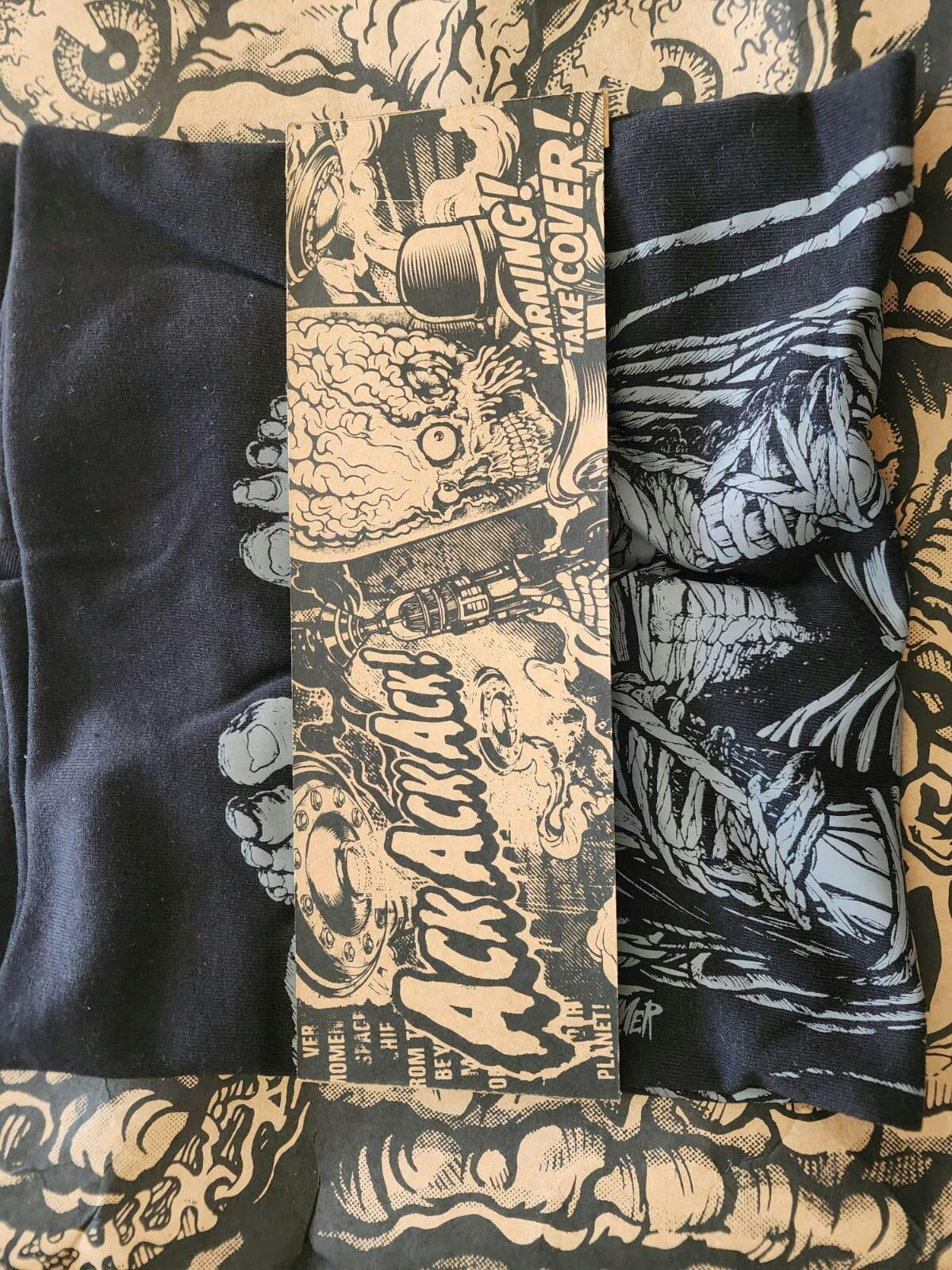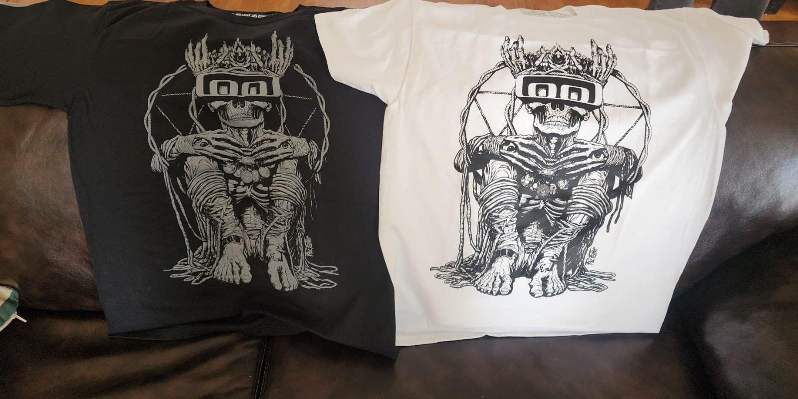 Y la metáfora de la momia esperando 8mil años a la banda ”We are spirit bound to this flesh” Con 7 dedos en un pie y “One foot nailed down” Pneuma. Sus cuerdas de momificación en un aura de geometría sagrada. Interpretaciones muchas y el ritual sigue. Y si voy a verlos en vivo tiene que ser con esta polera.